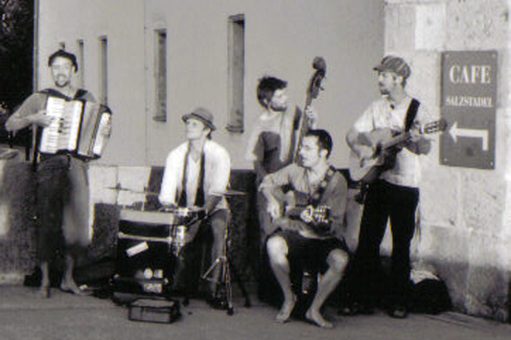 Ausgedehnte Straßenmusiktouren führten sie als Akkustik-Combo mit Kontrabass, Akkordeon, Kofferdrums, Geige und Gitarren bis nach Bosnien und Südfrankreich und schweißten das Kollektiv enger zusammen.