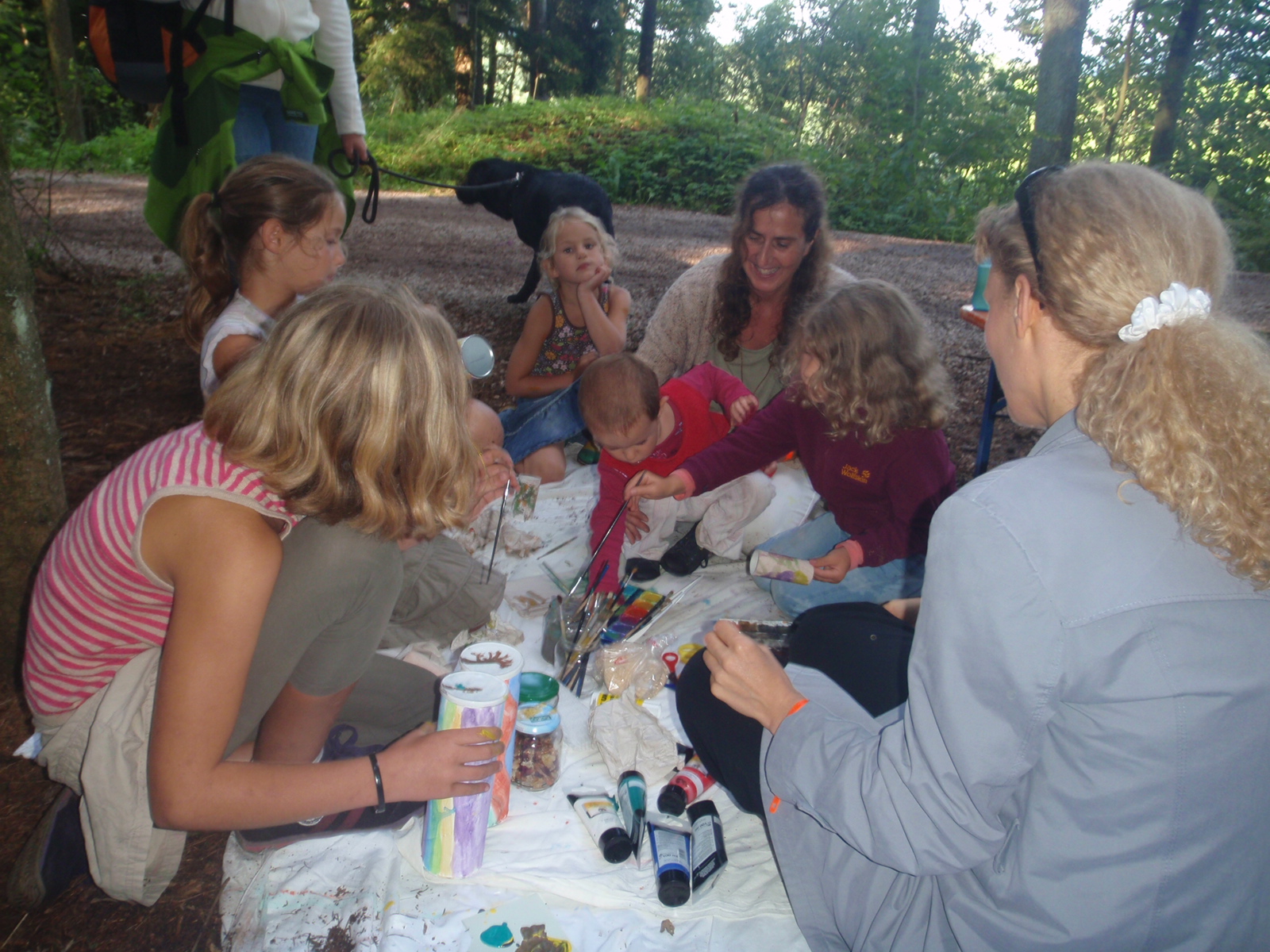 Wir entdecken die Natur und nutzen alles was wir finden um ein schönes Mandala in unserer Körpergröße zu gestalten. Kreativ-Workshop für Kinder mit Christine.